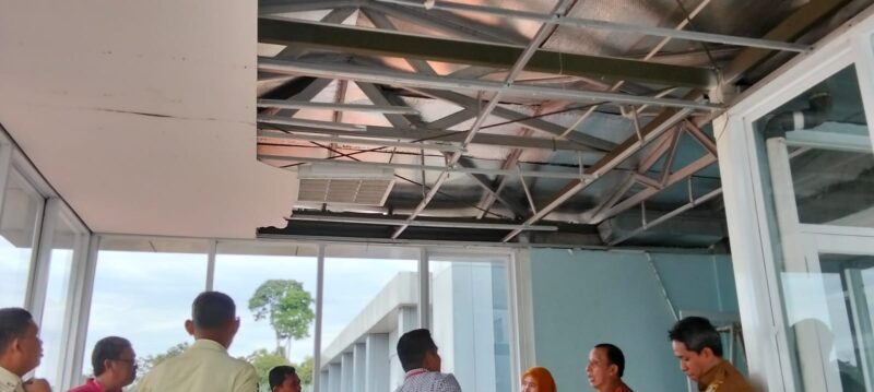 Dikatakan Dia, dalam pengecekan pihaknya , tidak ada ditemukan titik kebocoran dari plafond tersebut sebelumnya, karena memang sudah diantisipasi menggunakan alumium foil, serta kerangka plafond masih terlihat kokoh menggunakan rangka baja. Kerusakan ini memang karena akibat angin yang masuk melalui sela-sela lubang di koridor penghubung yang berbentuk liter L tersebut.