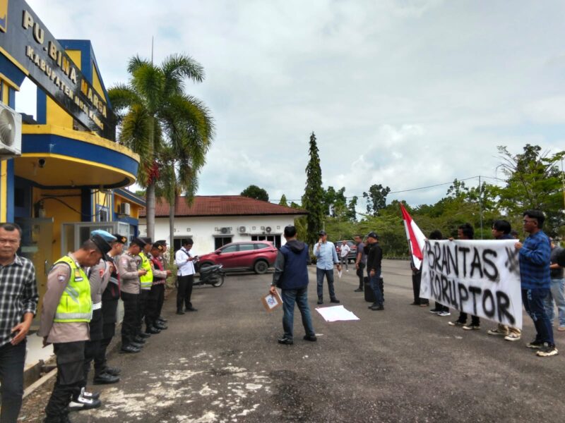 Bentang Spanduk Bertuliskan Berantas Koruptor, Pendemo Desak Copot Kadis PU BM Mura