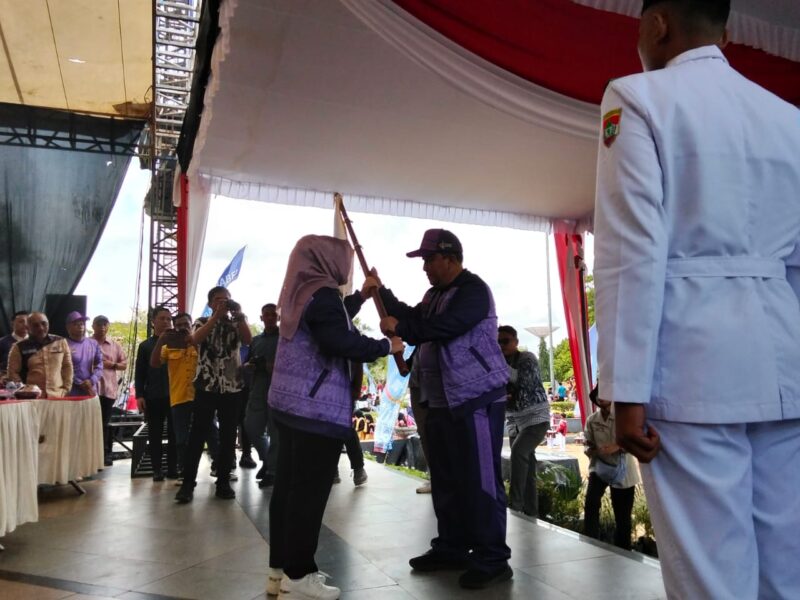 MUSIRAWAS -Bupati Musi Rawas Hj Ratna Mahcmud saat melakukan pelepasan secara langsung kontingen Musi Rawas mengikuti Pekan Olahraga Provinsi (Porprov) Sumatera Selatan tahun 2025 mengingatkan kepada kontingen agar maksimal untuk mengikuti Porprov Sumsel tersebut.